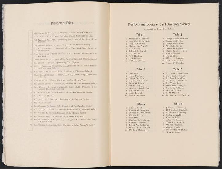 Anniversary Dinner of the St. Andrew's Society of the State of New York