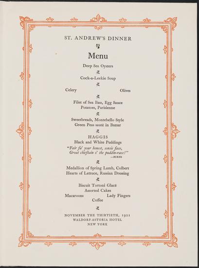 Anniversary Dinner of the St. Andrew's Society of the State of New York