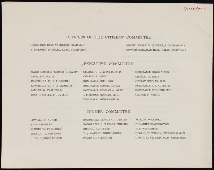 Dinner Given to the President of the United States, His Cabinet and the Officers of the Atlantic Fleet by the Mayor of the City of New York