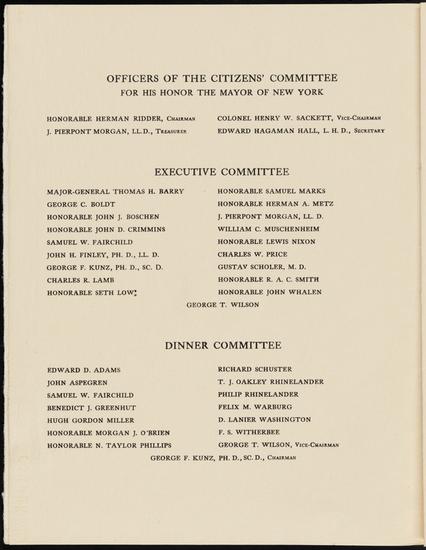 Dinner Given to the President of the United States, His Cabinet and the Officers of the Atlantic Fleet by the Mayor of the City of New York