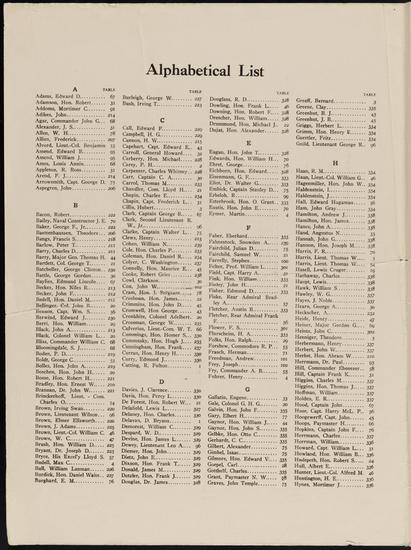 [Table assignments for the dinner given to the President of the United States, his cabinet, and the officers of the Atlantic Fleet.]