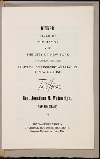 Dinner to Honor Gen. Jonathan M. Wainwright and His Staff