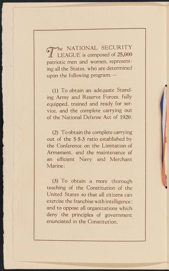 Ninth Annual Meeting and Navy Dinner of the National Security League
