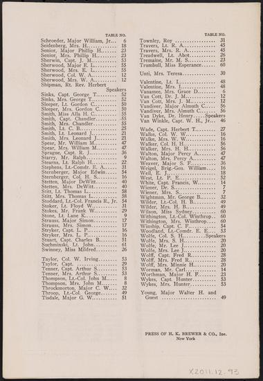 Seating Arrangements. Armistice Day Dinner. New York Chapter of the Military Order of the World War