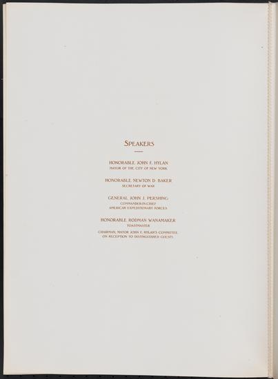 Dinner in Honor of General John J. Pershing, U.S.A.