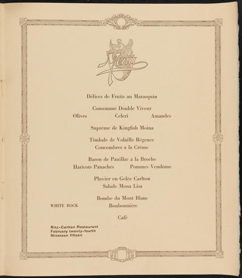 Dinner to the Honorable the Mayor John Purroy Mitchel, His Cabinet and a Possible Cabinet of a Mayor of the Future