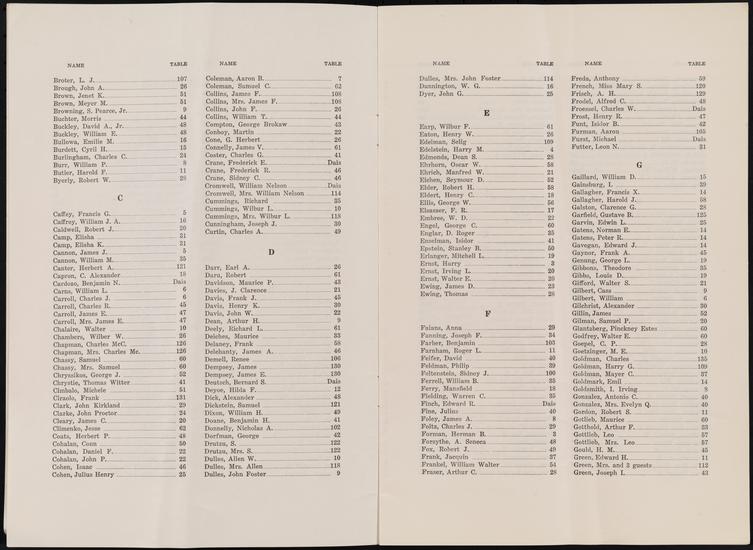 Table Assignments, Annual Bar Dinner of the New York County Lawyers' Association