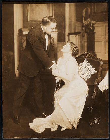 [May Irwin as Gloria Grey and Orlando Daly as Steven in Act II of "Widow by Proxy".]