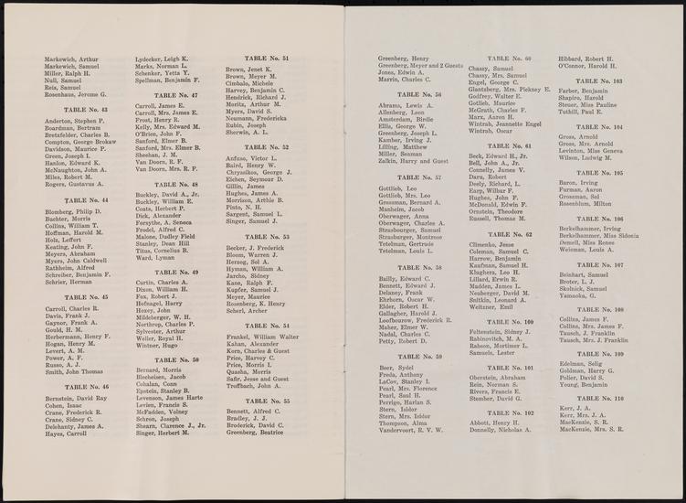 Table Assignments, Annual Bar Dinner of the New York County Lawyers' Association