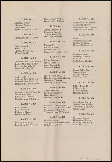 Table Assignments, Annual Bar Dinner of the New York County Lawyers' Association