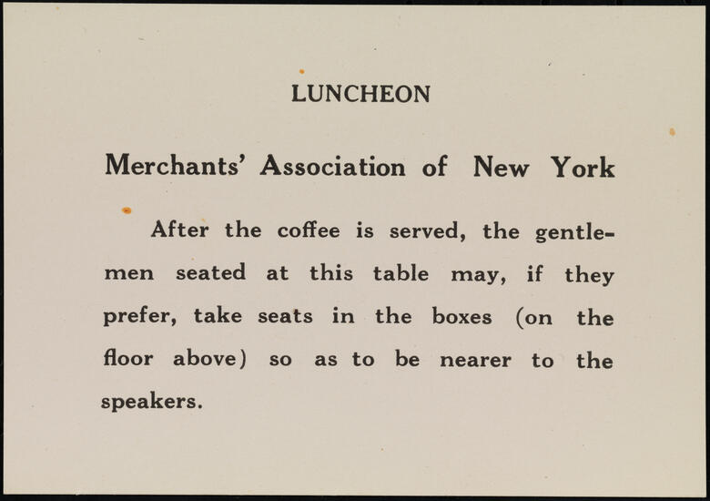 The Merchants Association of New York. Reception Committee Annual Banquet