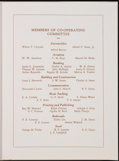 Seating List. Dinner in Honor of Pioneers of American Industry