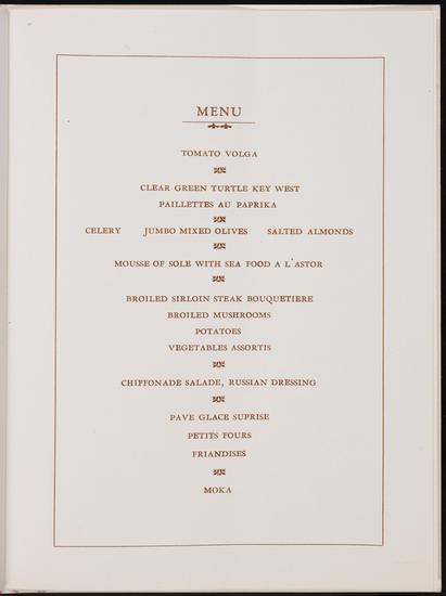Seating List. Dinner in Honor of Pioneers of American Industry