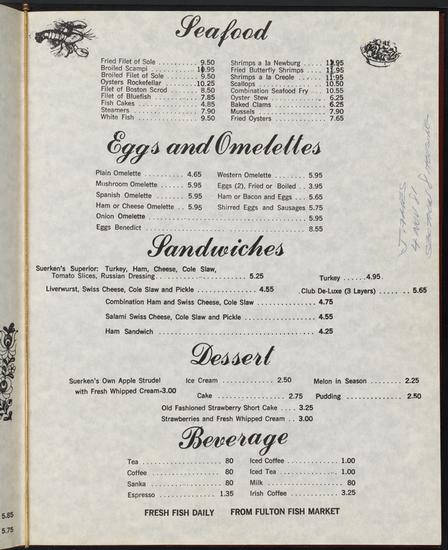 39 North Moore. View of tiled floor and walls in work rooms at S.H. Haran Co. fish importers.
