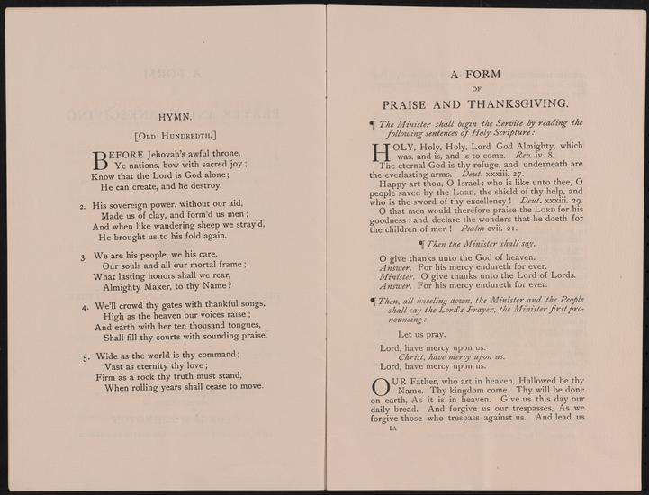 Service for April 30, A.D., 1889, being the One Hundredth Anniversary of the Inauguration of George Washington, April 30, 1789.