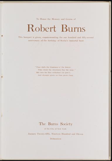 The Burns Society of the City of New York Annual Banquet Commemorating the One Hundred and Fifty-second Anniversary of the Poet's Birth