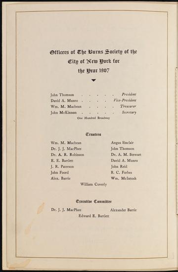 The Burns Society of the City of New York Annual Banquet Commemorating the One Hundred and Fifty-second Anniversary of the Poet's Birth
