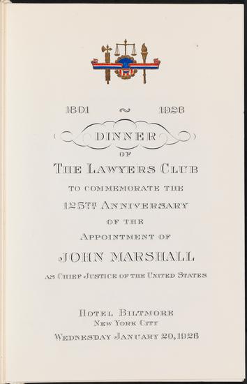 Dinner of the Lawyers Club to Commemorate the 125th Anniversary of the Appointment of John Marshall as Chief Justice of the United States