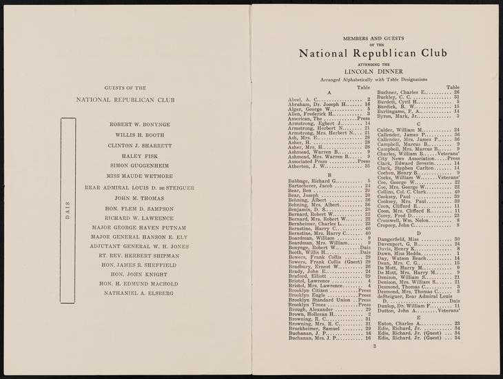 Seating List. Forty-third Annual Lincoln Dinner of the National Republican Club