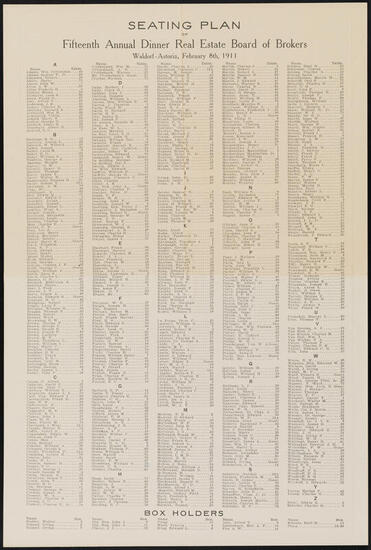 Seating List According to Tables. 23rd Annual Banquet of the New York State Association of Real Estate Boards