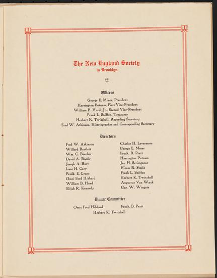 Thirty Second Annual Dinner of the New England Society in Brooklyn