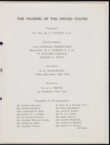 Dinner in honour of Sir Henry Mortimer Durand by the Pilgrims of the United States