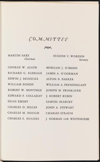 Table Assignments, Annual Bar Dinner of the New York County Lawyers' Association