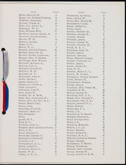 Dinner in honor of the Honorable Henry White, L.L.D.