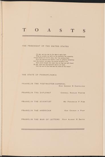Franklin Bi-Centennial. The Pennsylvania Society Seventh Annual Dinner