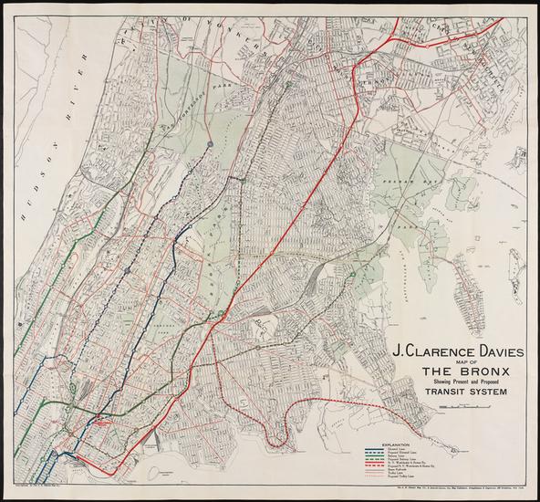 J. Clarence Davies Map of The Bronx Showing Present and Proposed Transit System