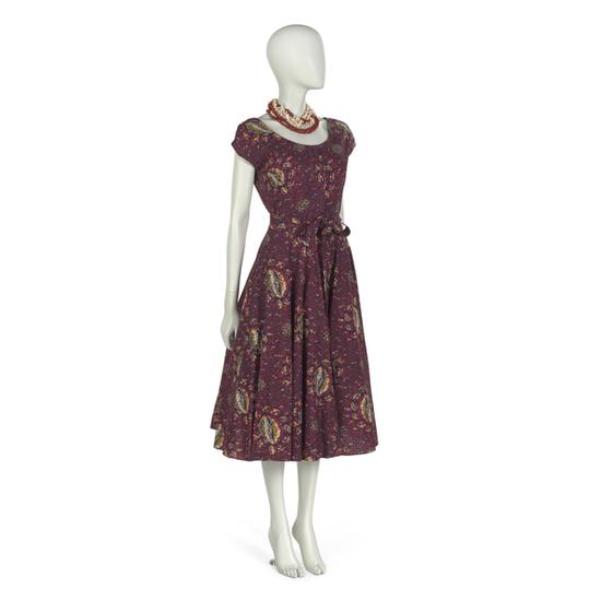 "June Day" ensemble comprising shirtdress and belt, hat, pair of gloves and pair of shoes