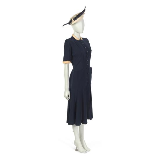 "June Day" ensemble comprising shirtdress and belt, hat, pair of gloves and pair of shoes