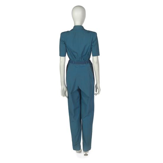 "Rosie the Riveter" summer jumpsuit in synthetic blue broadcloth