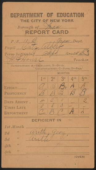[Report of Sylvan Katz and certification of his graduation from Public School 10B.]