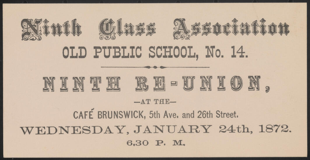 Re-Union of the Associate Alumni of the Male Dept. of Grammar School No. 14, New York City