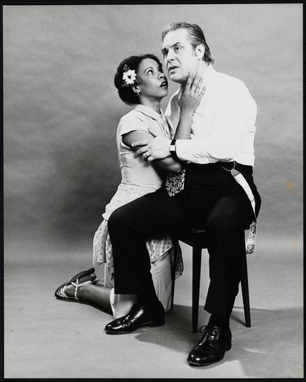 [Julie Harris as Gertie Kessel and Jack Weston as Dietrich Merkenschrift in "Break a Leg".]