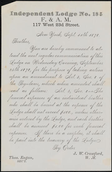 Independent Lodge No. 185 F. & A.M. [Summons to attend regular meeting on March 27.]