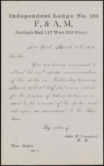 Independent Lodge No. 185 F. & A.M. [Summons to attend regular meeting on September 25.]