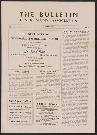 Celebration of the 75th Anniversary of the Founding of P. S. 10 Manhattan by the P. S. 10 Alumni Association