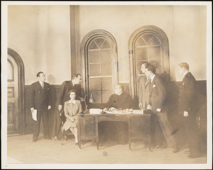 Description Left to right: John Farrell as Mahoney, Eddie Dowling as Peter Wade, Terry Holmes as Ann Stevens, Howard Smith as Judge Petrie, Wendell Corey as Dolan, Dehl Berti as Eddie Talmo and Robert Toms as Carew.