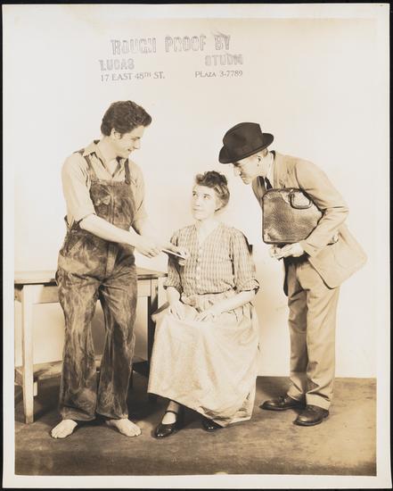[Dorrit Kelton as "Maw" Boone, Lois Hall as Emmy Lou and Henry Barnard as Tom Boone in "The First Million".]