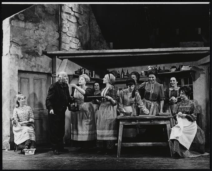 [Tessie O'Shea as Beth Morgan and Laurence Naismith as Gwillym Morgan (Dada) in "A Time for Singing".]