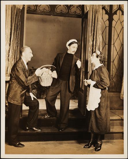 [Beverly Roberts as Vera Claythorne and Estelle Winwood as Emily Brent in "Ten Little Indians".]