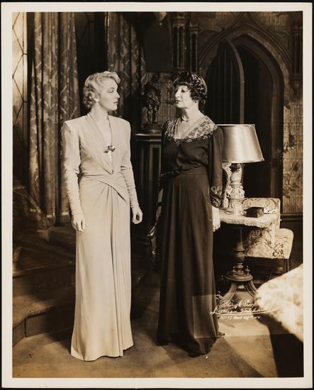 [Beverly Roberts as Vera Claythorne and Estelle Winwood as Emily Brent in "Ten Little Indians".]