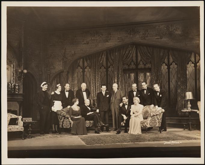 [J. Pat O'Malley as William Blore, Michael Whalen as Philip Lombard and Beverly Roberts as Vera Claythorne in "Ten Little Indians".]