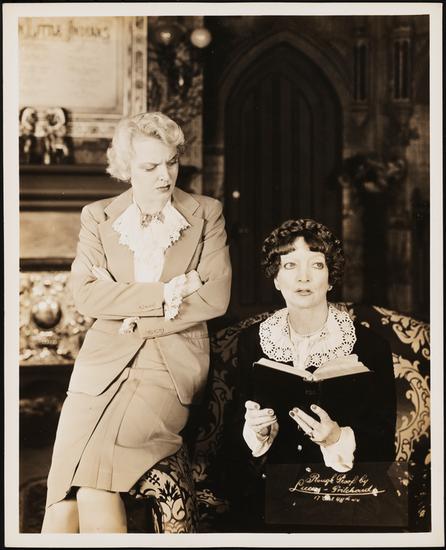 [Estelle Winwood as Emily Brent and Claudia Morgan as Vera Claythorne in "Ten Little Indians".]