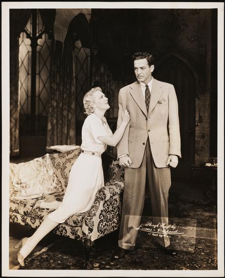 [Beverly Roberts as Vera Claythorne and Michael Whalen as Philip Lombard in "Ten Little Indians".]