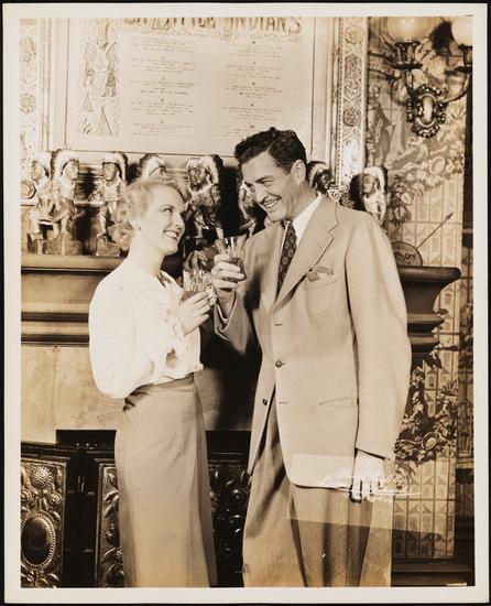 [Beverly Roberts as Vera Claythorne and Michael Whalen as Philip Lombard in "Ten Little Indians".]