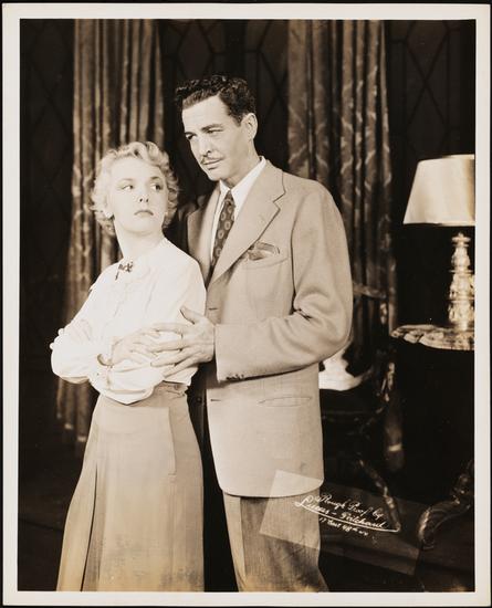 [Beverly Roberts as Vera Claythorne and Michael Whalen as Philip Lombard in "Ten Little Indians".]