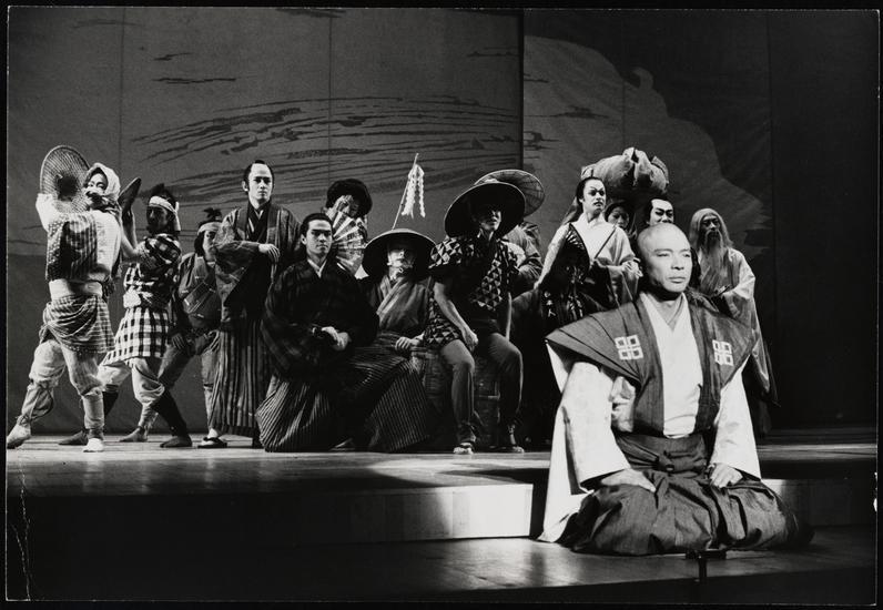 [Patrick Kinser-Lau as Shogun's Companion and Mako as Shogun in "Pacific Overtures".]